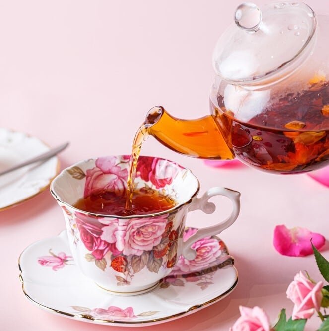 佐賀県嬉野市で丁寧に育てた無農薬紅茶の上品な甘さに、世界一香りが良いと言われているダマスクローズの上品で優雅な香りが飲んだ後に、フワッと広がります。至福の時間をお楽しみください。